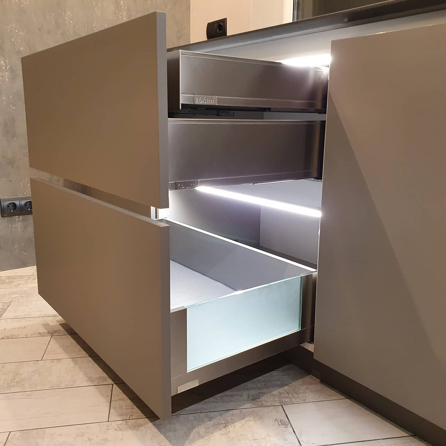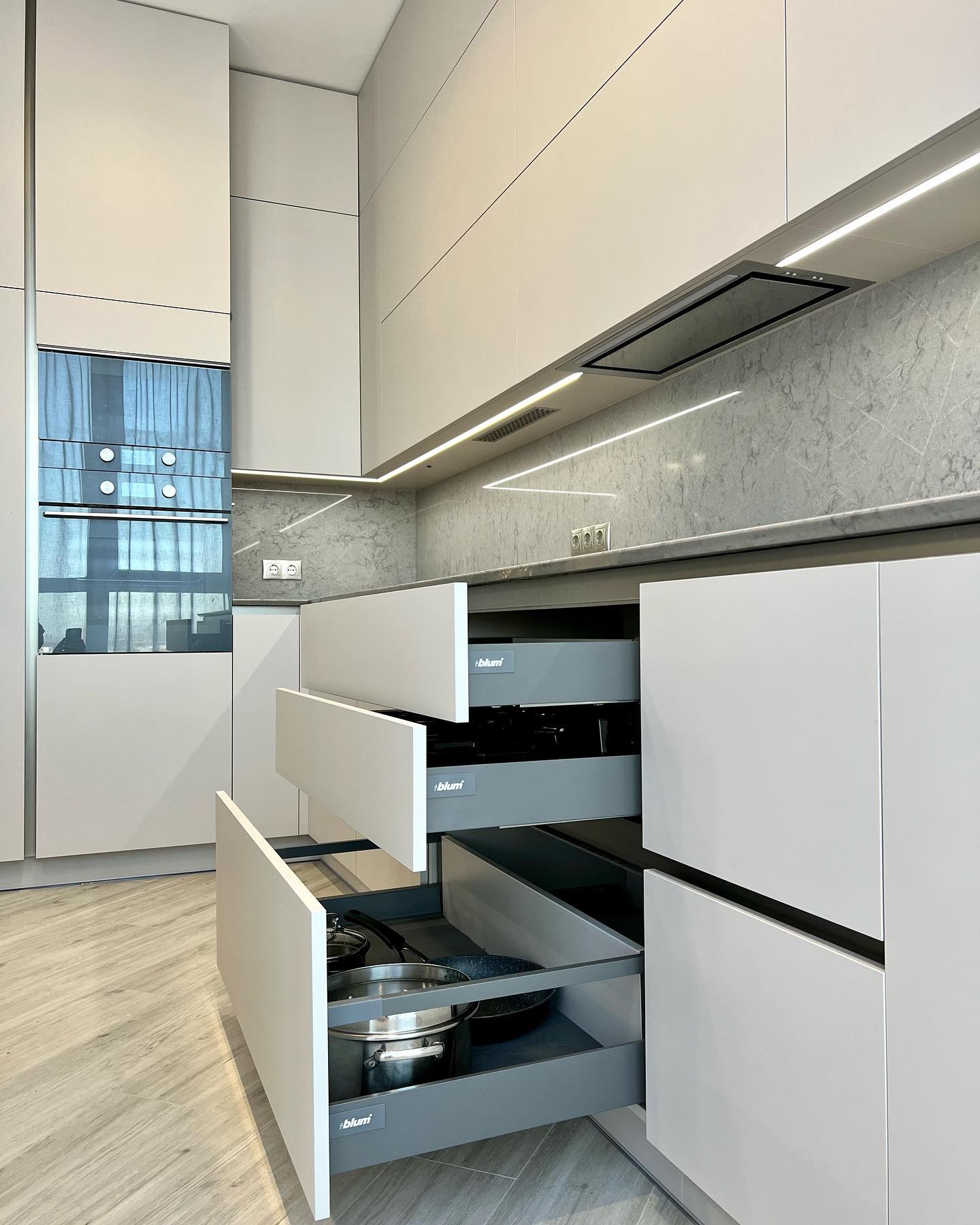 Наряду с мягкой мебелью у нас можно приобрести кухни различных ценовых категорий — от бюджетных модульных решений до элитных моделей по индивидуальному проекту.